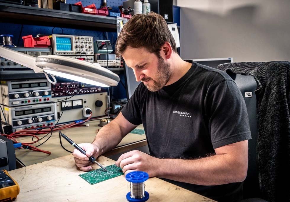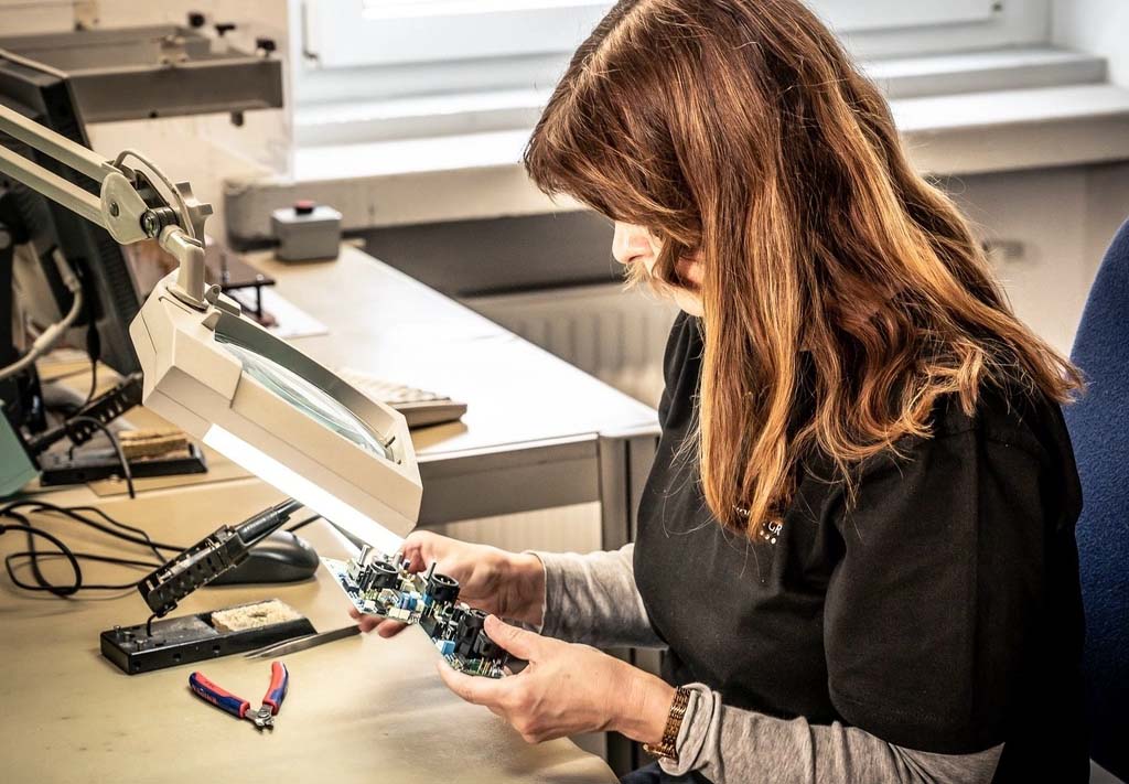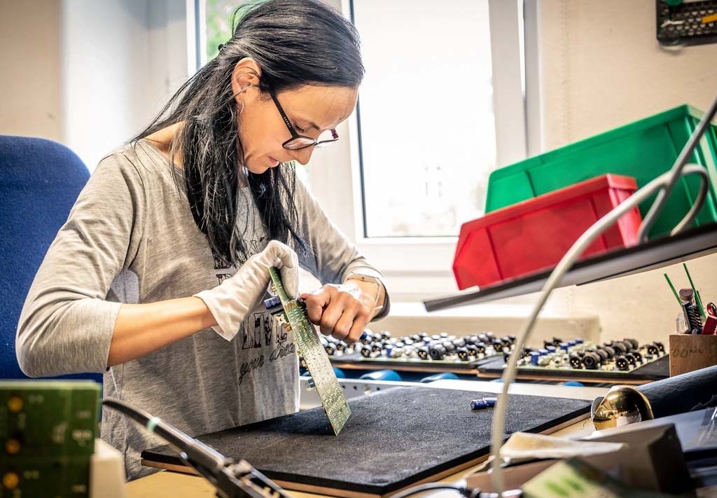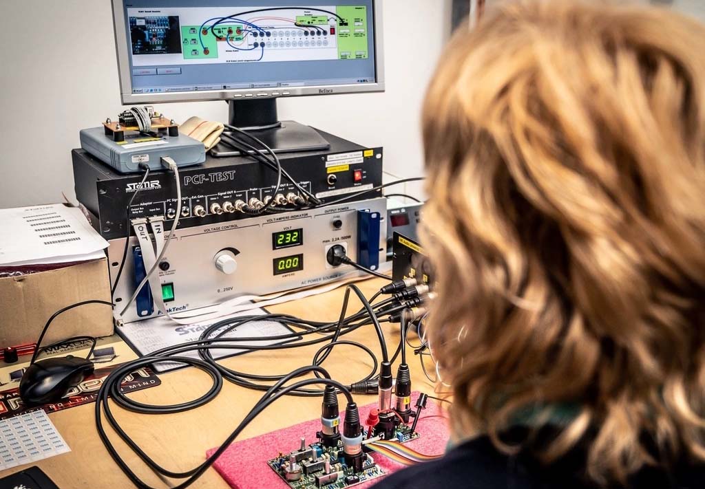 Tất cả bảng mạch đều được thử nghiệm chức năng lần đầu tiên. Một hệ thống máy tính hóa chạy qua tất cả các chức năng mà thiết bị sau này sẽ có: âm lượng, bộ lọc, công tắc... Sau đó chúng tôi lắp đặt các linh kiện điện tử và tiến hành kiểm tra an toàn, đo lường điện áp, kiểm tra độ chịu nhiệt.